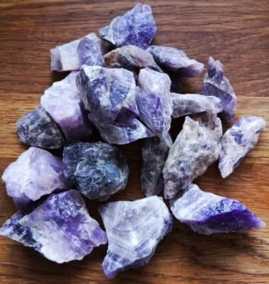 Ametyst Rå. Er en kraft og drømme sten, hjælper mod søvnløshed.