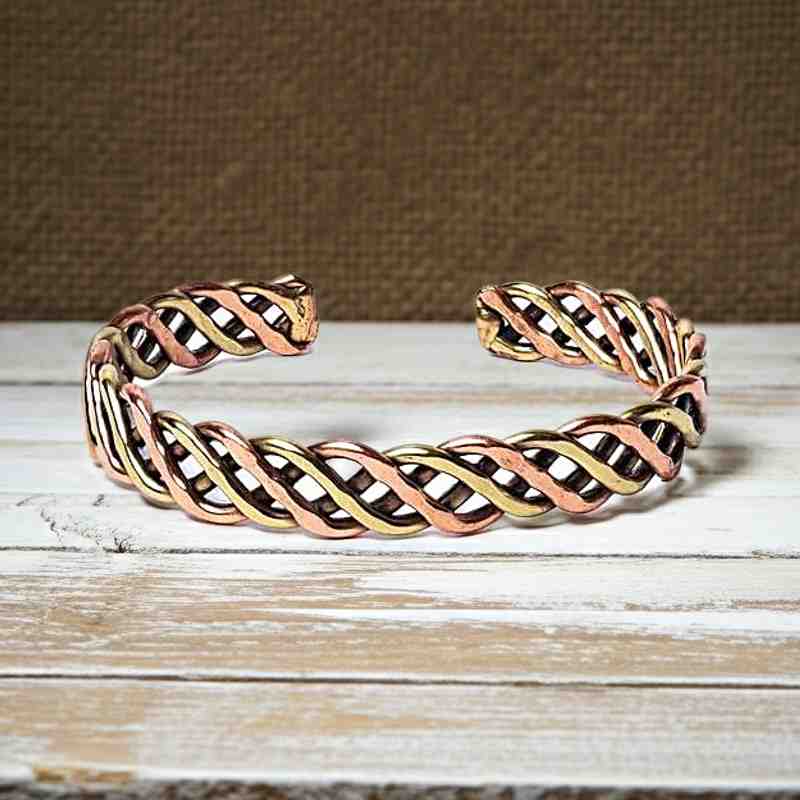 Flettet armbånd i kobber og messing, tidløs elegance med symbolsk dybde