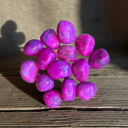 Howlit Pink er et naturligt mineral, der ofte er farvet for at fremhæve sin pink og rosa nuancer. Selvom stenen er farvebehandlet, betyder det ikke, at dens energiarbejde er mindre virkningsfuldt. Farvningen forstærker snarere howlittens allerede beroligende egenskaber med en blid og nærende rosa vibration.