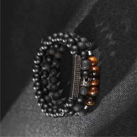 Lavasten og tigerøje afterlife armbånd er virkelig kraftig i dets energi. Materialerne i dette armbånd er lavet af lavasten og Tigerøje og har en elastisk snor. Det er et armbånd der har et meget maskulint træk, men også en form for ying yang energi. Dette Lavasten og tigerøje afterlife armbånd er nøje udvalgt, så du kan bruge det som som et enkelt armbånd, men du kan også sætte alle tre strenge sammen på engang, så du kan få dit helt eget look