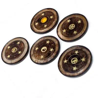 Røgelsesholder runde i mango træ 10 cm
