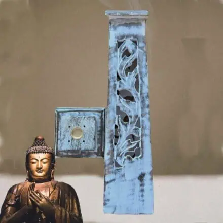 Røgelsestårn i hvidvasket mangotræ 30,5 cm højt, har igennem tiden været brugt i alle bl.a. spirituelle henseender dette er lavet i mangotræ der er hvidvasket, og her har du både til røgelsespinde og røgelseskegler.