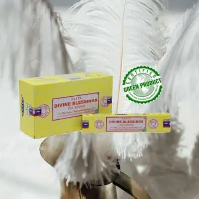 Satya Divine Blessings røgelsespinde er en helt unik røgelsespind med en krydret, moskusagtig, men sød duft, der giver en virkelig dejlig bekræftelse og etablerer en dyb forbindelse med det guddommelige.