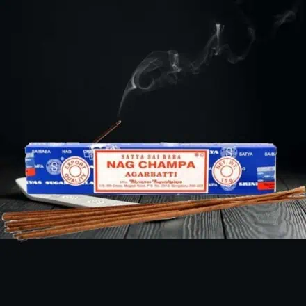 Satya Sai Baba Nagchampa Agarbatti er meget brugt i hele verden og det er der mange grunde til. Når du brænder Agarbatti af opfrisker du dit hjerte og sind. Agarbatti har en sød og beroligende duft, og indeholder frangipani, og en masala-blanding samt sandeltræ der renser omgivelserne og er med til at give en fantastisk atmosfære, og netop disse giver en beroligende, varmende følelse – der kan minde lidt om den du får fra jasmin, magnolia. Der er mange der bruge denne under udførelse af yoga, healing, meditation og bøn.