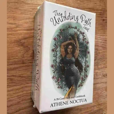 The Unfolding Path Tarot er et værktøj så du kan komme til at give og få beskeder, det er et kunstværk hvor man tydeligt mærker at der er lagt omhu og opmærksomhed for alle detaljer. Hvert et kort er en smuk illustration samt en visuel poesi, og her igennem guides du igennem livets mysterier og udfordringer.