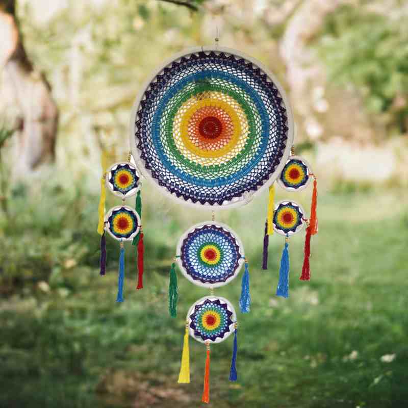 Vores ekstra store drømmefanger tager denne tradition til nye højder, bogstaveligt talt, med dens imponerende størrelse og livlige regnbuefarver, der symboliserer glæde, harmoni og mangfoldighed.